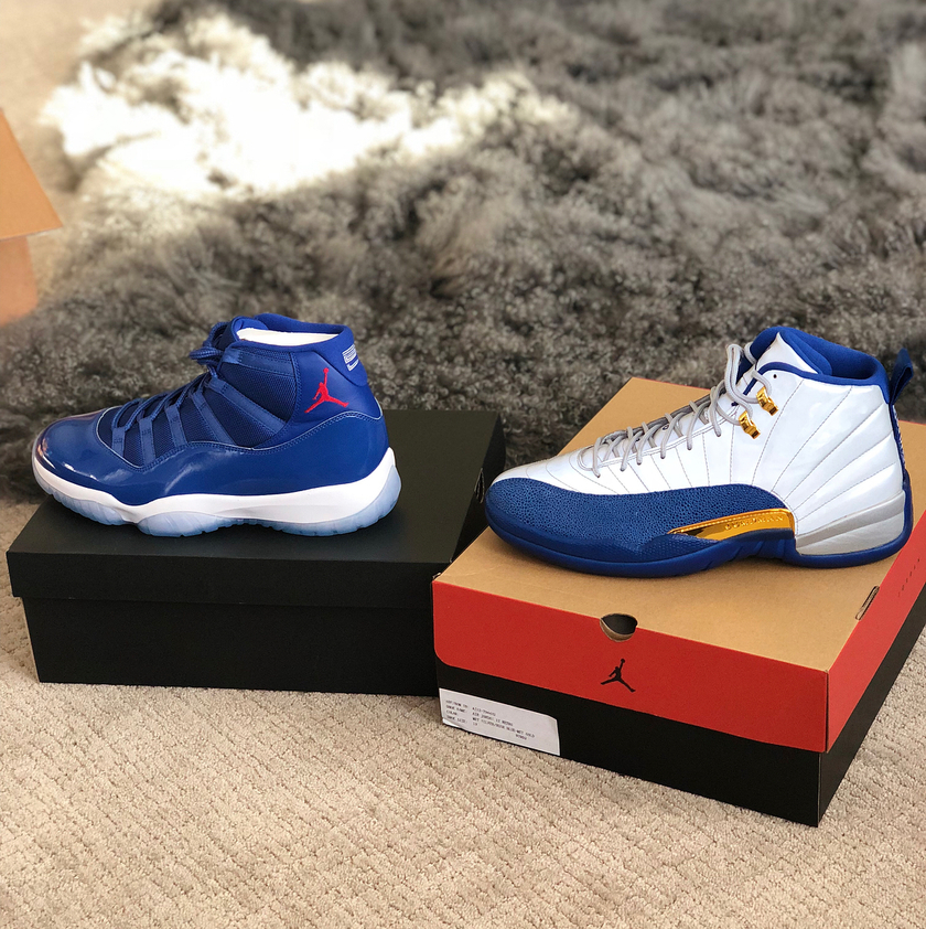 Jordan Brand将Air Jordan 11、12这两款经典球鞋辅以芝加哥小熊队的球衣色调加持,鞋垫上均有小熊队Logo点缀。另外,其中AJ12还用了金色元素点缀,点明其冠军套装的身份。