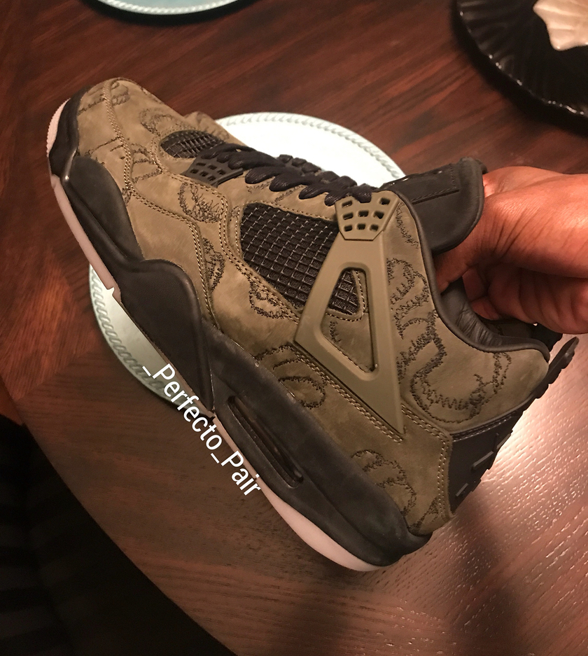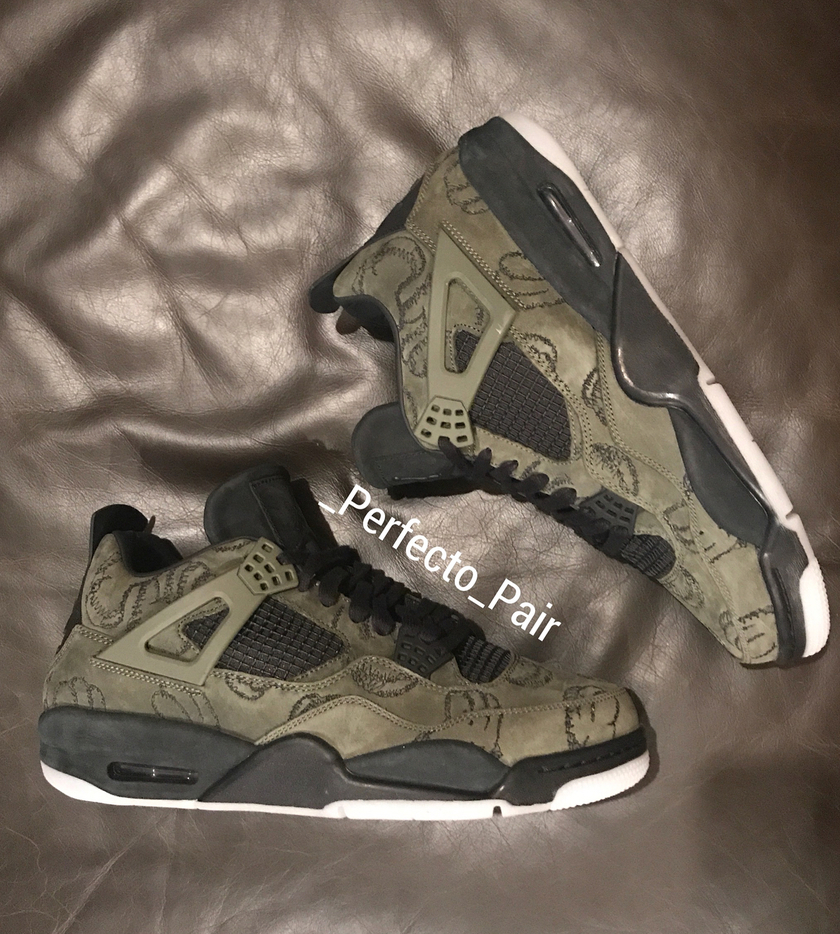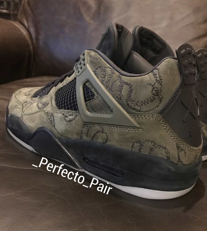此番@_perfecto_pair曝光了一款全新的KAWS x Air Jordan 4 “Deep Olive”。与灰色版和黑色版不同的是,这版将鞋面替换成了深绿色,大底则由白色覆盖。除此之外,涂鸦和后跟“XX”标识依旧得到了保留。