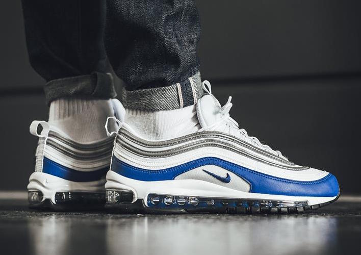 红遍 2017 全年的 Nike Air Max 97 推出了数不尽的配色,恰逢今年也是Nike air max 1诞生的30周年,于是设计师就将这款经典的Air Max 1 OG配色“Game Royal”挪用到了Nike Air Max 97之上。白灰色鞋身搭配蓝色鞋头,复古味道十足。