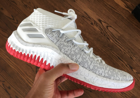 全新灰/白/红配色的Adidas Dame 4现身网上,灰色Primeknit鞋面与普通版本的网面鞋面相比,将会带来怎样的性能差别呢?