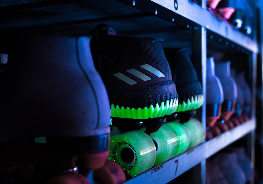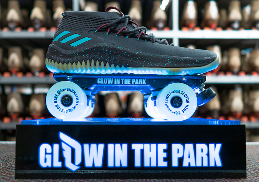 该配色设计灵感来源于利拉德喜爱的旱冰运动,其夜光外底成为鞋子的最大亮点。此外,鞋面以深灰色覆盖,鞋带扣、鞋舌拉环以及后跟三道杠Logo则选用红蓝点缀,并在中底加入泼墨效果。