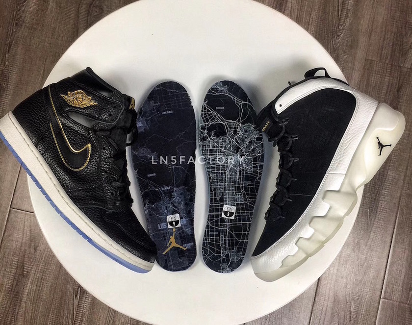 此前我们已经看过一双Jordan Brand为2018年洛杉矶全明星打造的Air Jordan 9“LA”,该鞋以洛杉矶为灵感,以黑白配色加身,鞋垫上印有当地的地图。
