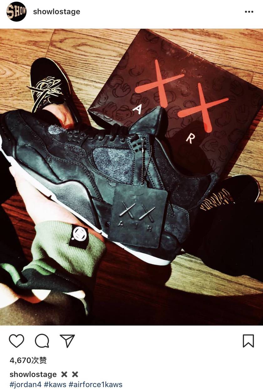 今日,罗志祥在其Instagram上晒出了一双将于11月27日发售的Kaws X Air Jordan 4“Black”。