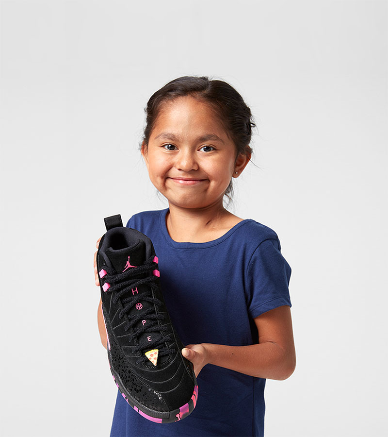 这双鞋的小设计师是一位名叫Carissa的9岁小女孩,她天生没有肾脏,一直依靠透析,但本人却十分乐观阳光。
