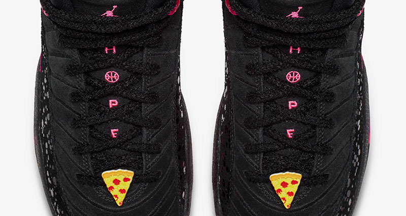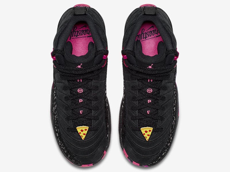 该鞋以黑色麂皮覆盖,鞋带环、后跟鞋提、中底等细节注入粉色点缀,而披萨鞋带扣、外底透出的宠物狗,彰显了无限童趣。