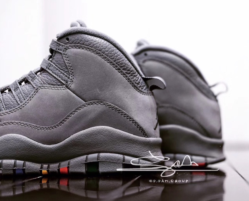 此前曝光的Air Jordan 10“Cool Grey”,今日曝光了更多细节图。