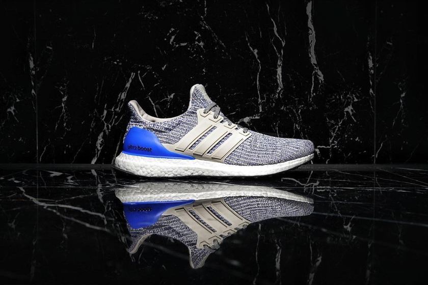 球鞋摄影师 @sneakerprophet_ 又为大家率先曝光了一双 UltraBOOST 4.0 最新灰/蓝配色的实物图片。选用灰色为基调,这双 UltraBOOST 在 Primeknit 鞋面上融入了蓝色斑点带出 4.0 独有的崭新纹路,搭配灰色三线 Cage、蓝色磨砂后跟支架,以及白色 BOOST 中底呼应,再置于黑色 Continental 橡胶外底之上。虽然暂无发售信息,但可以说是一款值得期待的新配色了!