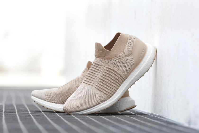 继早前首次推出全新 Ultraboost Laceless 无鞋带版系列后,adidas 继续推出更多配色。此番带来两款全新配色,分别以裸粉色与蓝黑色作为主色调,大面积的波浪线横条制作出贴合足背的 Laceless 袜套式 Primeknit 鞋面设计,最后搭载 BOOST 技术以及 Continental 外底为超人气 Ultraboost 带来更多变化。UltraBoost Laceless 定价 $1,599 港元,感兴趣的朋友密切留意。