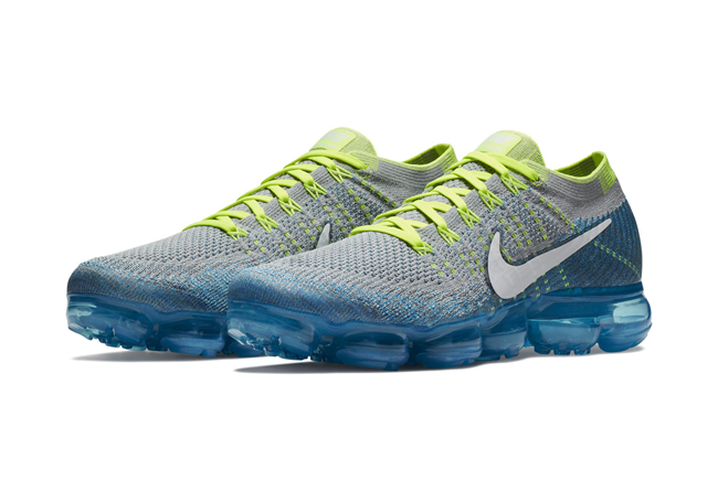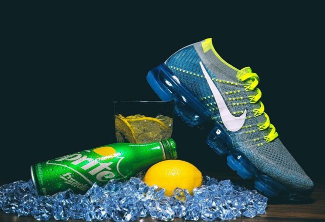 另一款则是早在九月份就曝光的Nike Air VaporMax “雪碧”配色,也是受到不少人的喜爱。以极为清爽的蓝色和荧光黄为主调,两者的搭配营造出大家熟悉的雪碧主题配色,鞋身醒目的 Swoosh Logo 则使用白色点缀,即便是透过屏幕都能感受到透心的凉爽。