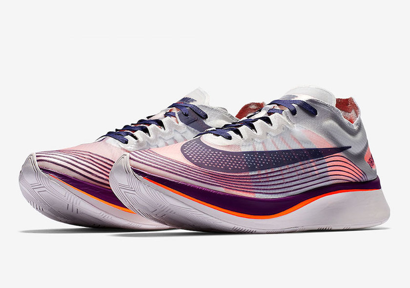 首先是上月惊艳亮相的全新配色 Nike Zoom Fly SP ,无疑是光大跑步爱好者近期最为期待的鞋款。标志性的半透明鞋面极为轻薄犹如蝉翼,紫色与橙色的碰撞,活力四射更辨识度极高,不论是日常穿着还是跑步运动,都是舒适又吸睛的绝佳选择。