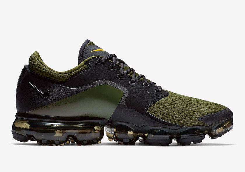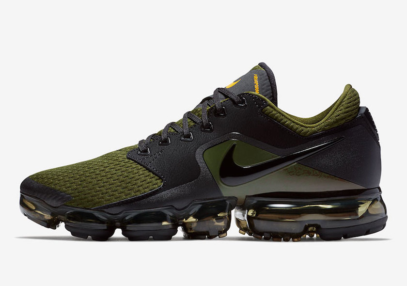 Air VaporMax CS 在保留 VaporMax 气垫大底的基础上,对鞋身做出改变,以常见于传统跑鞋上的网眼与合成材质取代原本的 Flyknit 针织结构,橄榄绿融入黑色、黄色点缀的细节,视觉效果极佳。据悉,这款Air VaporMax CS黑白配色即将上架Nike.com,售价$175 USD,感兴趣的朋友不妨多多关注。