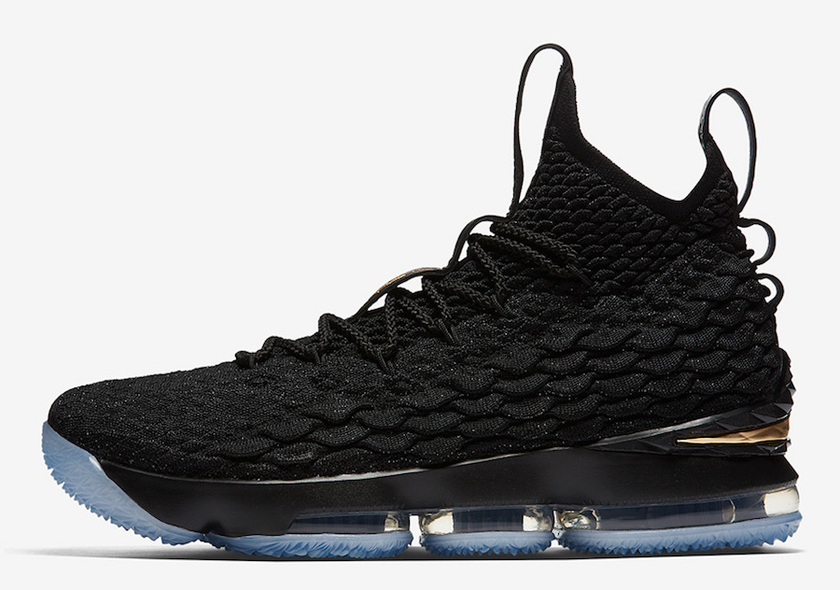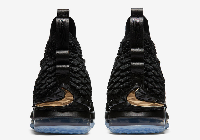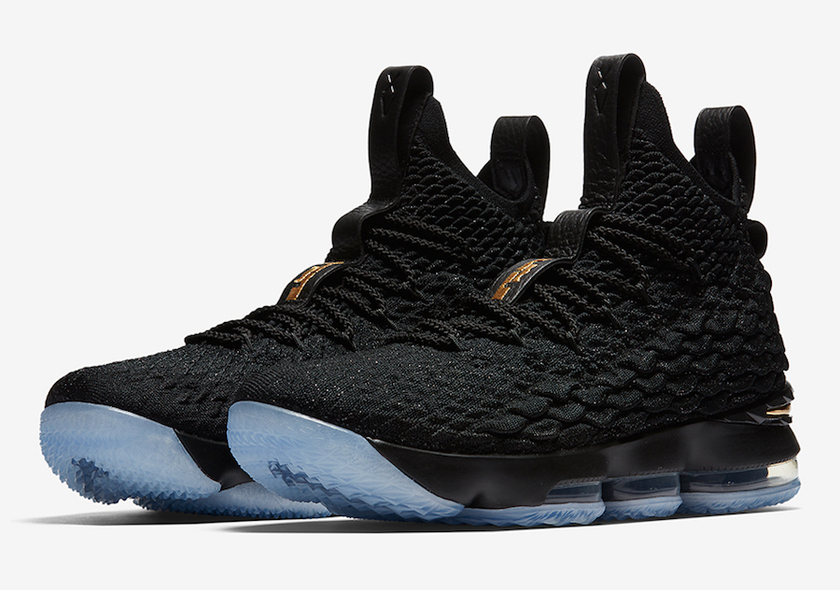 詹皇的LeBron 15再爆新配色!以黑色为配色基调,全黑的编制鞋面和中底,搭配点点金色细节,这双黑金配色似低调中不经意间流露出一丝奢华。而后跟处的金色Nike Swoosh,则是点睛之笔点亮了整双球鞋。