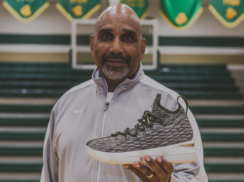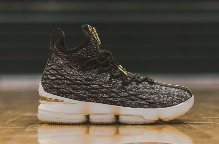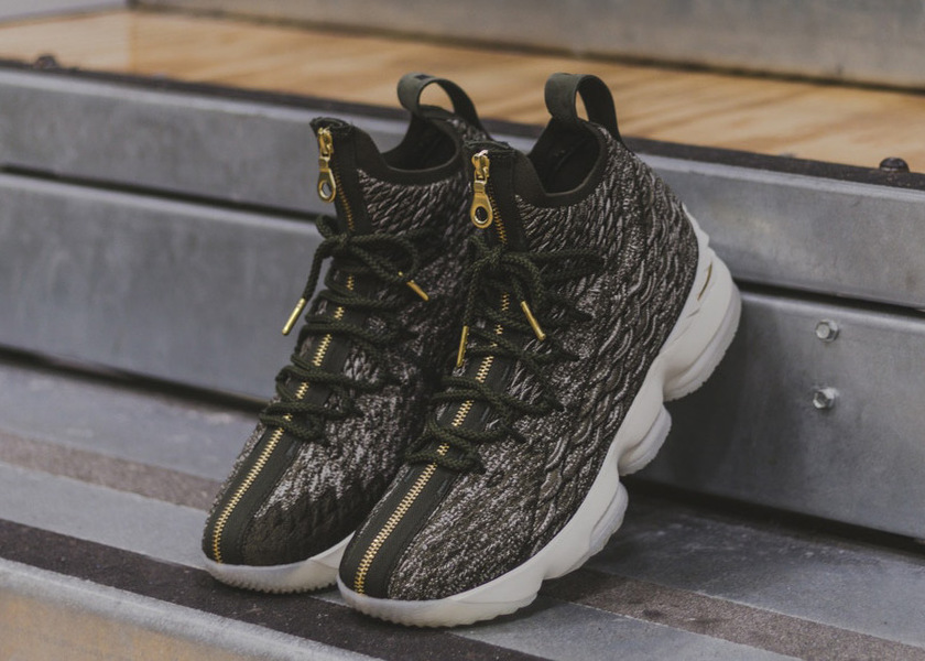 第一双为詹皇母校St. Vincent-St. Mary’s(SVSM)获赠的KITH x Nike LeBron 15 SVSM。其鞋面以浅灰为主,中心那条墨绿与金色撞色的拉链极为显眼。后跟的金钩搭配乳白色的中底和大底,这双新配色充满时尚感!