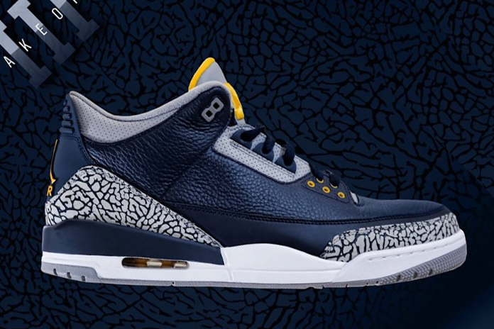 自从加入Jordan Brand以来,密歇根大学狼獾队的仇恨值也是突飞猛进!其蓝黄的专属配色和标志性的 “M” Logo 都是那么醒目。近日,密歇根大学狼獾队再次曝光了两双属于他们的专属PE,而这次的鞋型分别为AJ3和AJ12。