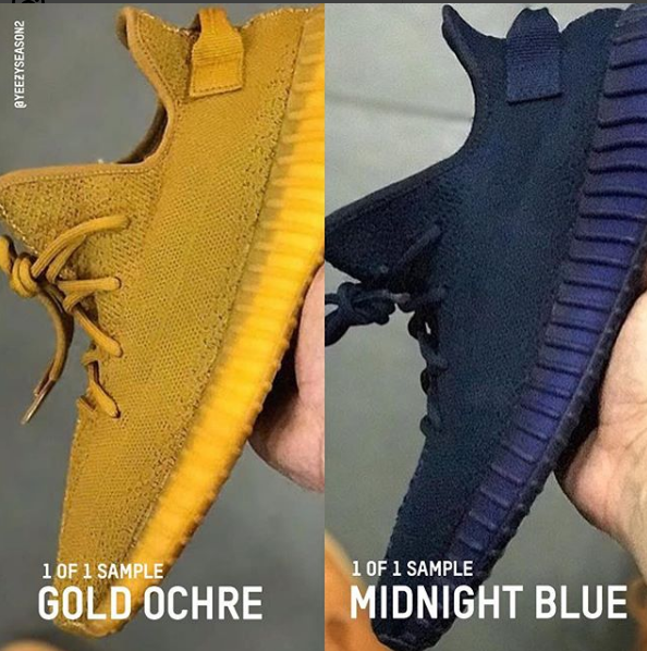 近日,爆料账户Yeezyseason2再度晒出了全新的 YEEZY BOOST 350 V2 Samples谍照,并包含两款配色,其中一款是之前曝光过的“Gold”金黄设计,另一款则是比较深的蓝色设计,都走的是纯色的简约路线,没有油漆条也没有SPLY-350的字样,鞋身连同鞋底都采用同色系呈现,干净利落。你开始期待2018年的Yeezy了吗?
