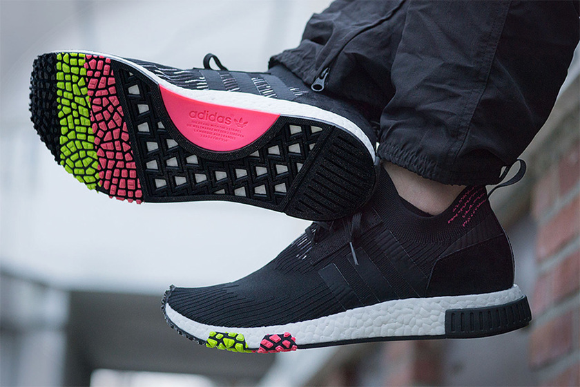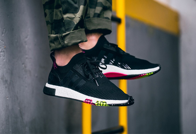 NMD Racer 依然承袭了 Primeknit 编织鞋面和全掌 Boost 缓震中底,鞋身轮廓造型干练帅气,而外底则暗藏缤纷玄机!前掌掌以绿色和粉色的独特点缀呈现,外翻包裹 Boost 中底,带来 “花边” 效果,上脚效果则是沉稳中迸发个性,相信在行走、跑动中的闪亮效果更佳不凡!