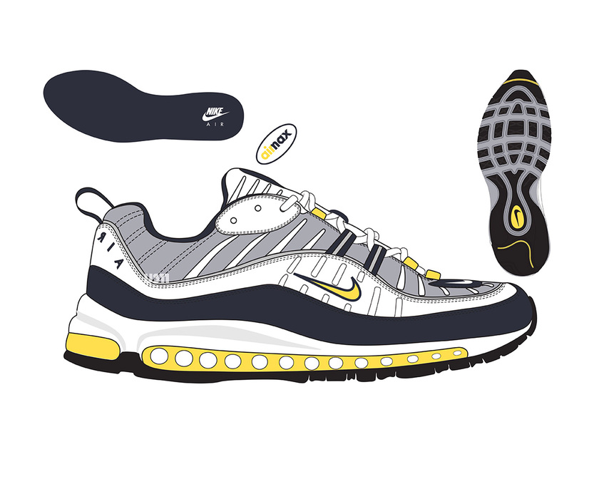 2018 年将迎来经典复古跑鞋 Nike Air Max 98 二十周年,自然会有众多的精彩配色轮番上线,目前已经确认大家心目中的 “高达” 配色将要回归,同时还有一款灰色主题的新配色亮相,百搭干练的鞋身气质,气垫则以 Volt 荧光色点缀,低调又暗藏视觉冲击力,带来强烈的活力视觉效果。目前 Air Max 98 还没有释出官方的发售消息,感兴趣的朋友请继续关注。