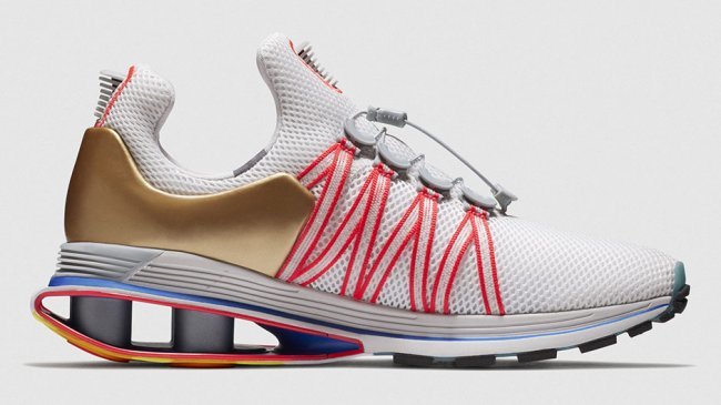 早前就有消息称,Nike 将再次启动 Shox 科技,终于,这款 Nike Shox Gravity即将登场!前卫的鞋身造型搭配 Shox 缓震科技,白色基础上添加红、蓝、金等多色细节,极具未来感的鞋带系统也让人大开眼界。据悉,这款全新的Nike Shox Gravity鞋款被定义为休闲跑鞋,将于 1 月 12 日进行发售,发售价格为 $140 美元,具体性能与穿着感受令人期待!货号:AQ8553-009