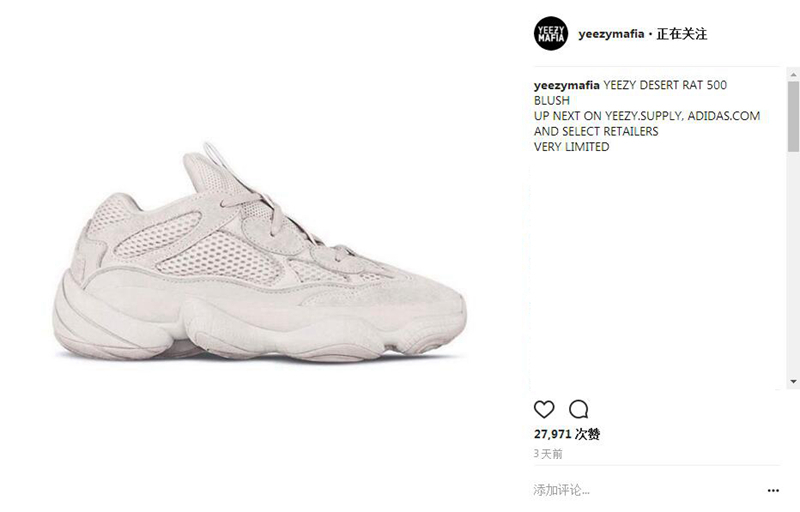 adidas Yeezy Desert Rat 500 “Blush” 的大规模正式发售日期可能要提前了!据爆料账户 Yeezy Mafia 称,adidas Yeezy Desert Rat 500 “Blush” 很有可能将于近期登场!
