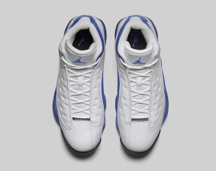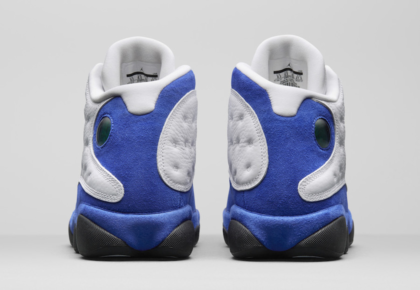 鞋款选用纯白为配色基调,将皇家蓝色调的麂皮材质注入鞋款后跟以及中底出,营造出丰富的层次感。搭配经典的Air Jordan 13 鞋型,清爽亮眼。