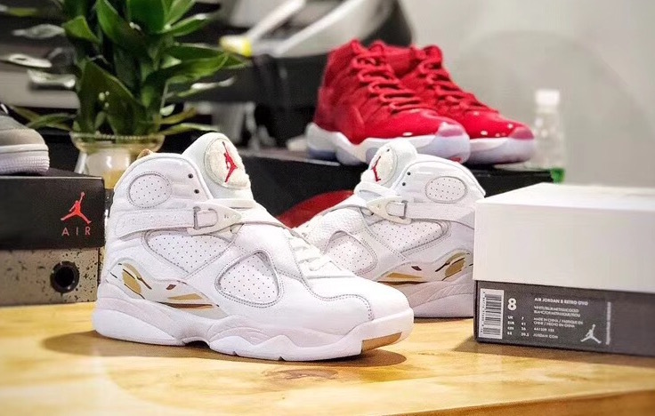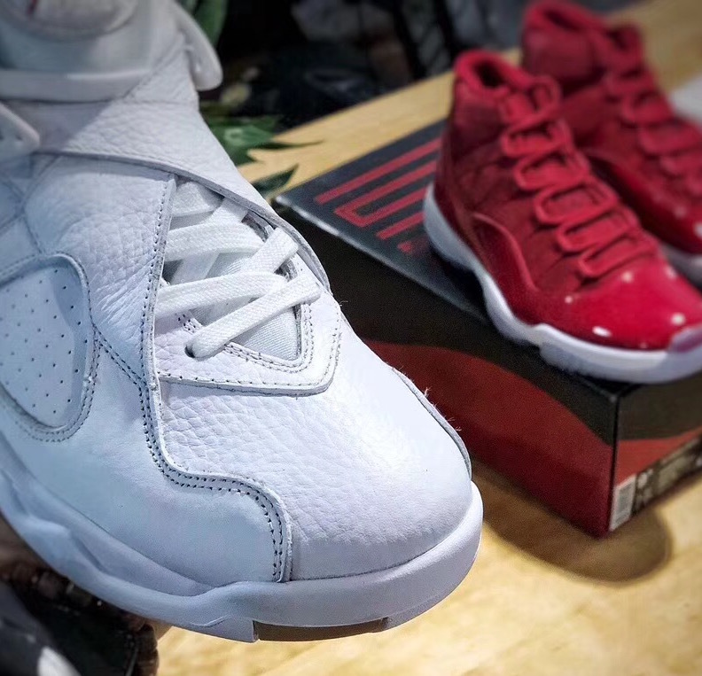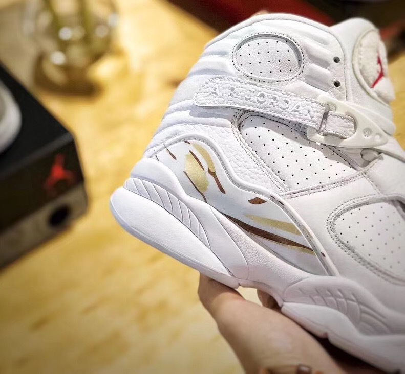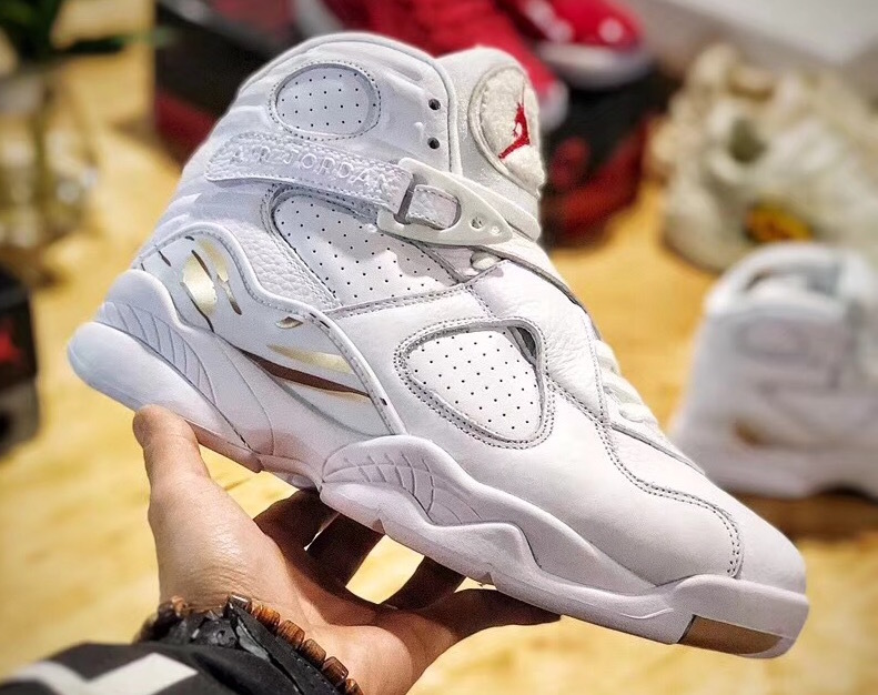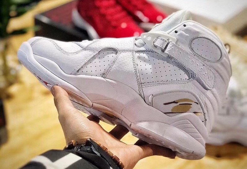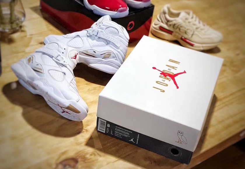 上周末曝光的 Air Jordan 8 OVO “White” 于近日传出实物细节图!