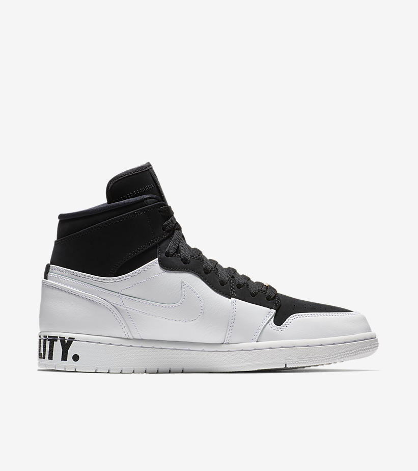 Air Jordan 1 “Equality” 采用极简的黑白撞色设计,搭配少许金色细节,简洁大方,百搭时尚。而后跟处的 “EQUALITY” 字样相当吸引眼球,突显其呼吁民族平等的主题。此外,鞋舌上印有安东尼的个人Logo,彰显其独特身份!