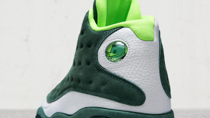 作为亲友配色的专属PE,这双 Air Jordan 13 “Oregon Ducks” PE 并不会市售。
