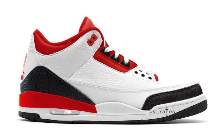 随着黑水泥等配色的相继确定,Air Jordan 3 三十周年的大幕也缓缓拉开。近日,又一双名为 “Fire Red” 配色的 Air Jordan 3 被 @py_rates 曝光,但也仅仅只是释出渲染图而已。