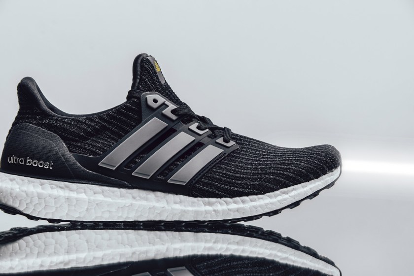 为了庆祝 BOOST 科技诞生 5 周年,adidas 特地以刚问世不久的 UltraBOOST 4.0 作为蓝本,打造了一双全新的 LTD 限量版本。这双 UltraBOOST 选用黑色 Primeknit 鞋身搭配白色 BOOST 中底的经典组合,特别之处在于鞋面崭新的纹路与两侧三线 Cage 均被融入了 3M 反光元素,并搭配磨砂后跟支架,此外在鞋舌 Logo 与鞋垫上还以黄色调对比点缀。目前,该鞋款已可经由 Feature 等指定店铺购得,定价为 $220 美元。
