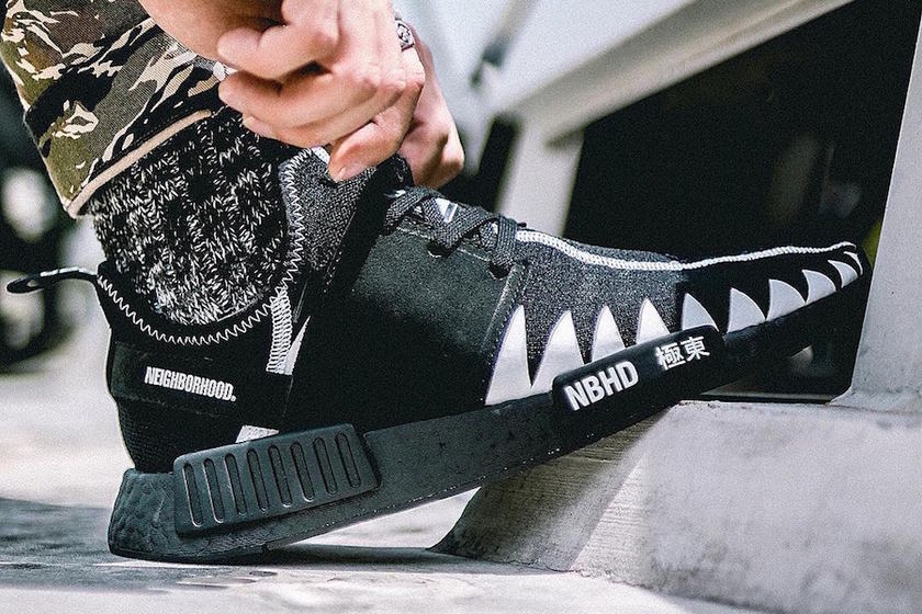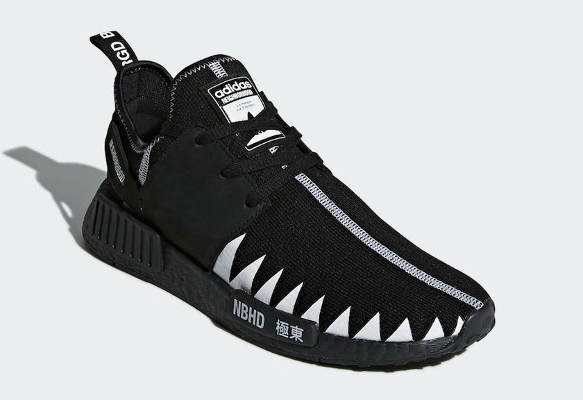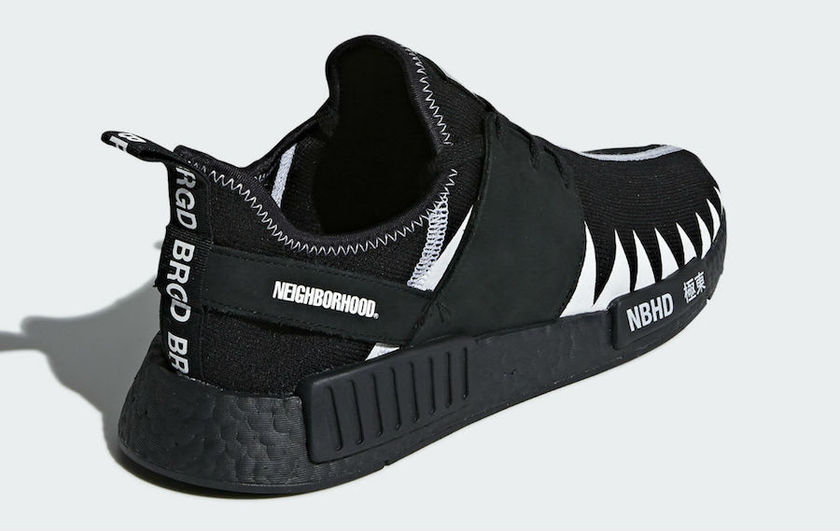 早前为大家带来过一双 NEIGHBORHOOD 与 adidas NMD R1 的联名鞋款样品,其中前稳定块上还写有“NBHD 极东”字样,与鞋舌、后跟绑带和鞋提上的 Logo 一同彰显联名身份,又是一暗黑系的新作。此番终于迎来发售信息,你是否期待已久了呢?