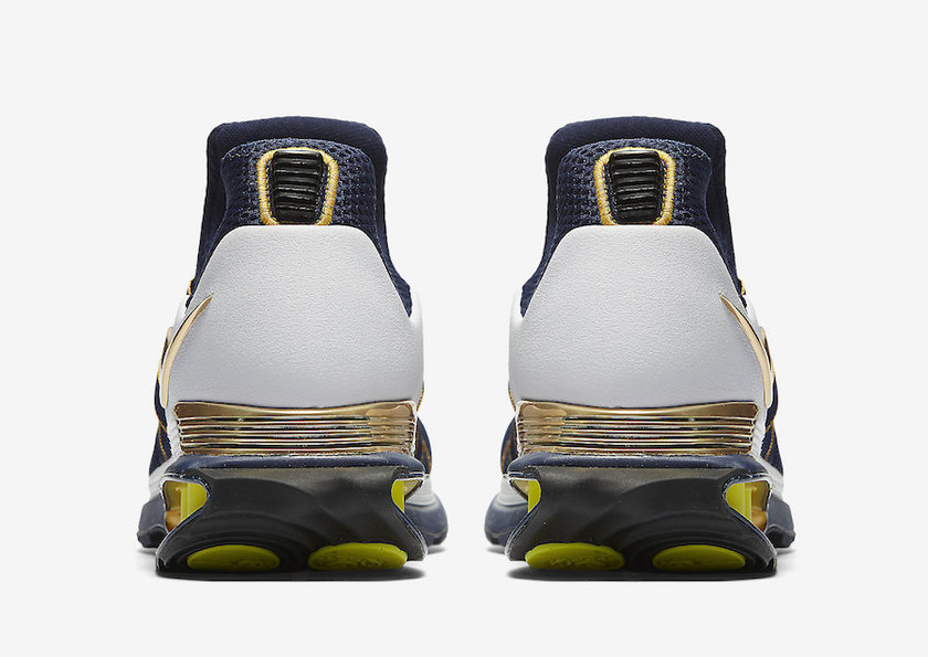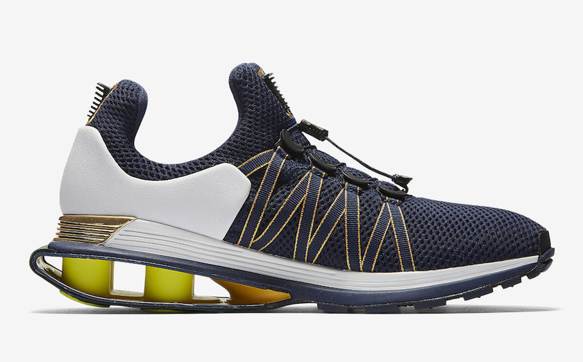 继早前正式推出了多款配色后,此番又迎来了一款全新配色的惊艳曝光,整体配色方案以一抹沉稳的深蓝装扮为主基调,辅以白金双色点缀细节,前卫的鞋身造型搭配 Shox 缓震科技,极具未来感!全新蓝金配色将于近期发售,定价为 $150 美元。