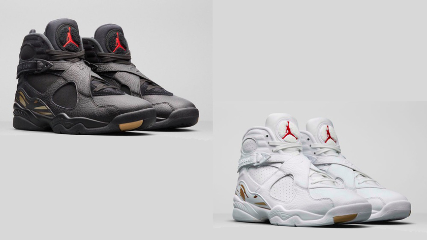 两双 Air Jordan 8 OVO 延续了之前的配色基调,依旧采用十分简约的黑白二色,除了出众的材质,还将少许金色细节注入其中,给人一种设计简约却又不失华丽的感觉。