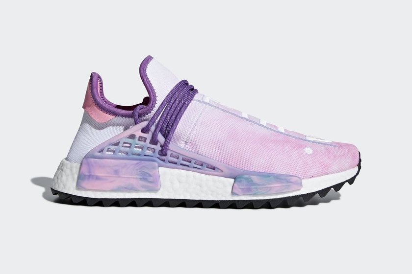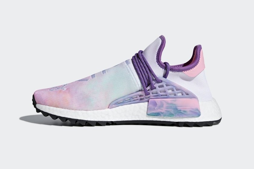 从最近曝光的频率看来,由 Pharrell Williams 与 adidas Originals 打造的 Hu NMD 今年将迎来大量的新配色。最新释出官方图片的这双紫色扎染版本可以说是非常梦幻了,带有粉、紫、橙、绿多种色调的 Primeknit 鞋身经由扎染处理呈现出独特的效果,两侧支架与稳定块也被赋予了同样梦幻的细节呈现。