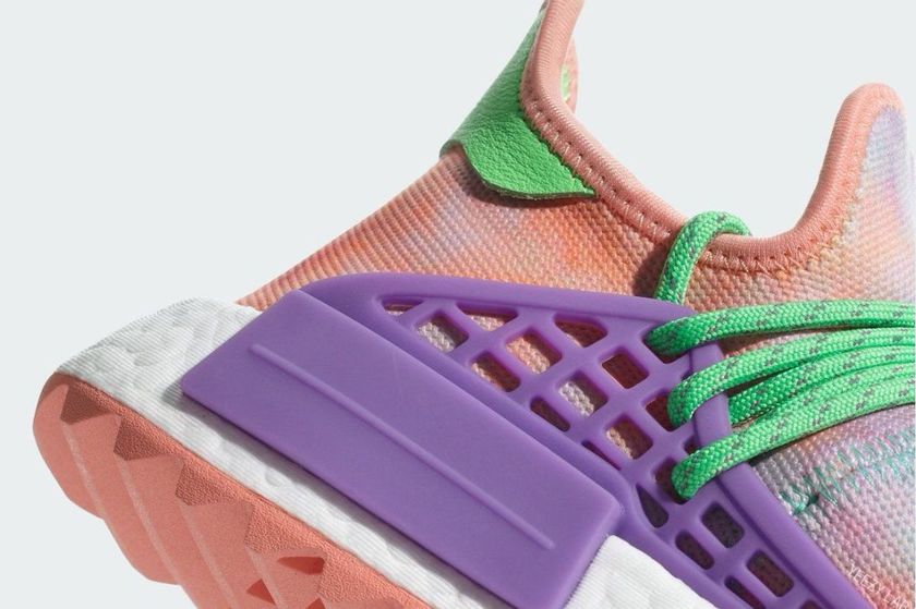 此番带来 Pharrell 与 adidas Originals 联名 Hu NMD 全新「Holi Pack」中「Flash Green」配色的官方图片。采用了扎染风格,不过由紫、蓝、绿、橘等色调交织出来的视觉效果更为强烈,而绿色鞋带、紫色支架和稳定块与粉色 Trial 锯齿外底也与鞋面完美呼应,并以简单的「HU」白色刺绣字样点缀。据悉,该鞋款也将于 3 月 16 日正式发售,定价为 $250 美元,敬请期待!