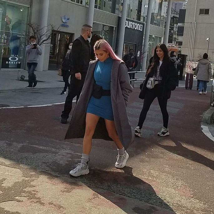 而她展示的另一身Yeezy season 7 装扮,可能更适合她,紧身的齐X连衣裙搭配Yeezy 700 Boost,性感时尚两不误!