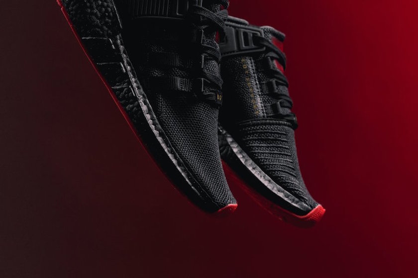 adidas Originals EQT 93/17 Boost 自从面世以来,不仅以出色的脚感、时尚的外形收获了超高人气,也成为了新配色加身的对象。此番带来全新的“red carpet” 系列中黑红配色的细节近赏。简约干净的黑色鞋身以网眼、皮革材质构建,搭配黑色的Boost 中底,亮点则在于其“红底”配置。带来独特的视觉效果。
