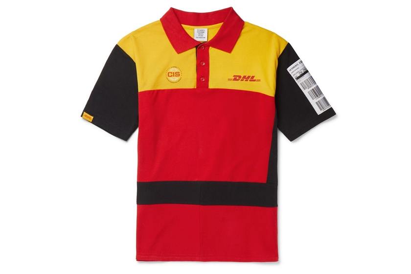 Vetements 日前带来与 DHL 的官方联名系列,将招牌“DHL Express”Logo和红黄颜色进行拼接,带来不对称剪裁短袖 T-Shirt,短袖拼接 Polo 衫,以及长袖 Polo 衫等多款全新设计。