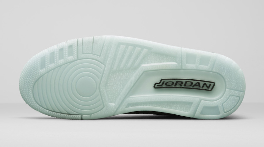 除此之外,这双首发 “Black” 配色十分出人意料的搭载了浅绿色夜光大底,要知道以前夜光大底对于 Nike 来说可是重磅鞋款的象征,看起来 Nike 十分重视这次编织AJ3的首秀。要说有什么不满意的,小编觉得就是后跟的 Jumpman Logo 了,换成 Nike Air 勾子屁股多好。