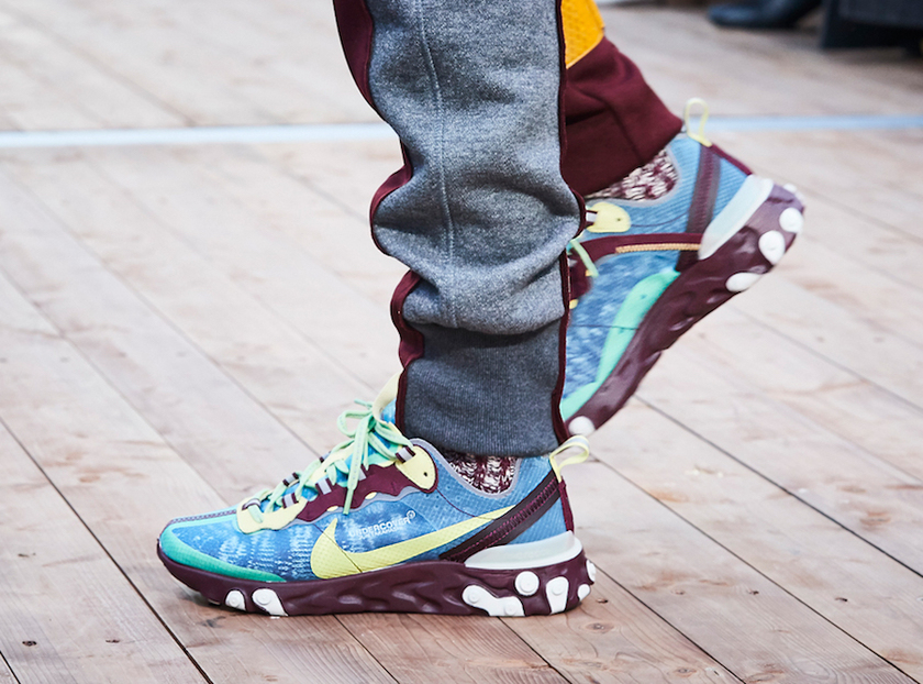 据悉新鞋款名为 React Element 87,高桥盾这次选择基于 Nike React 革新技术进行创作,三双率先亮相的鞋款均采用大面积轻量材质结合麂皮细节打造,而配色上都可说是迎合了当下刮得正猛的“复古老爹鞋”风潮,同时亦不乏户外气息。