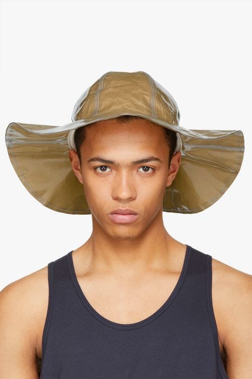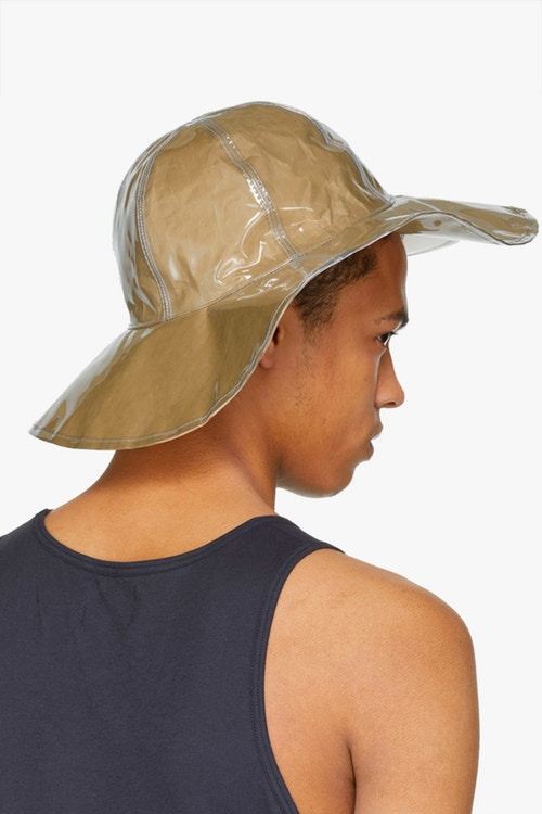 近日,COMME des GARÇONS 释出了全新的春夏系列新作预览,其中最惹人注目的要属这顶 PVC 牛皮纸材质的渔夫帽了。一直以来 PVC 牛皮纸材质的渔夫帽都是弄潮儿们的心头好,COMME des GARÇONS 别出心裁的将二者搭配在一起,想必又是时尚圈的一场角逐战。据悉,该款帽子定价为 $ 310 美元,已经登陆 SSENSE 和 Farfetch 贩售。