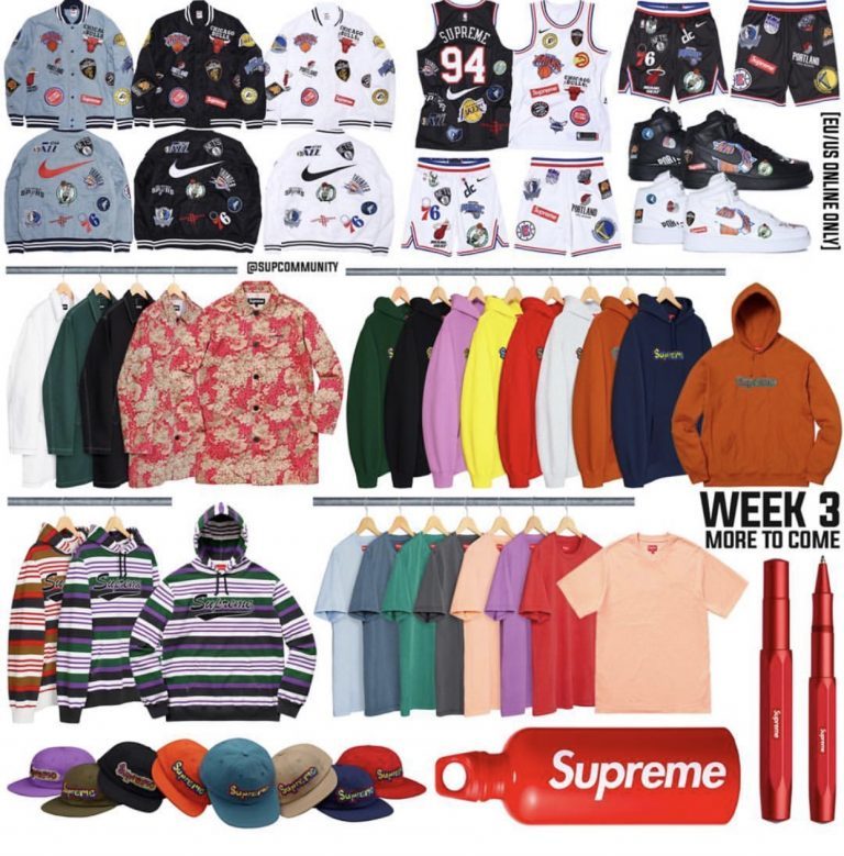 Supreme 2018 S/S Week 3 单品,将完整发售 Supreme x NBA x Nike 的三方联名系列,包含外套、球鞋、球裤和一双 Air Force 1 Mid。与此同时,一系列的 Supreme Logo Hoodie 卫衣和一只红色 Supreme 水壶也将成为本周发售列表中的抢手单品。
