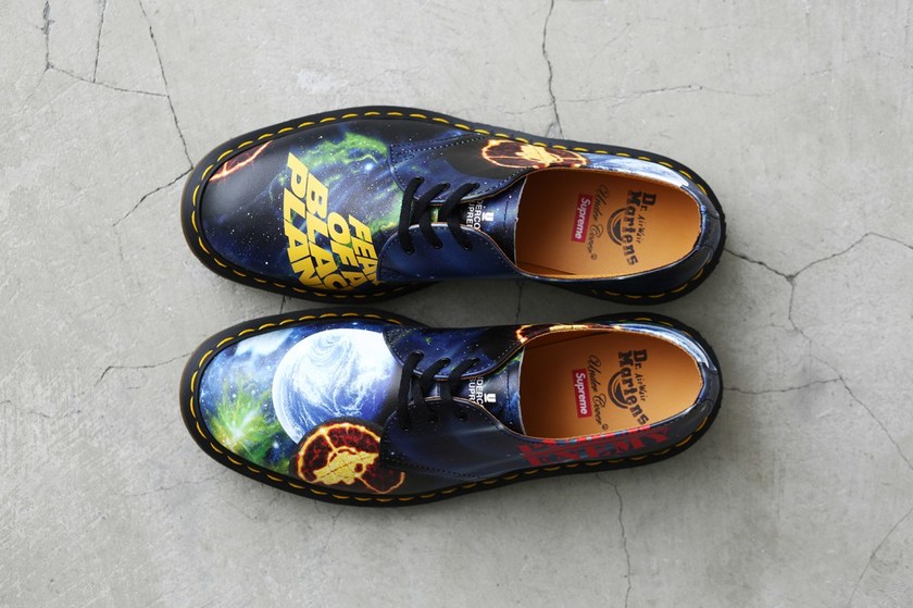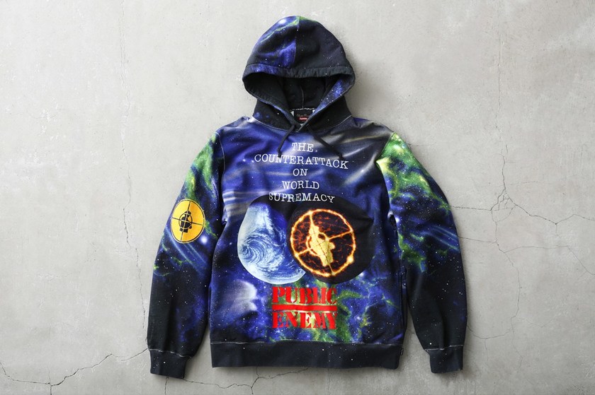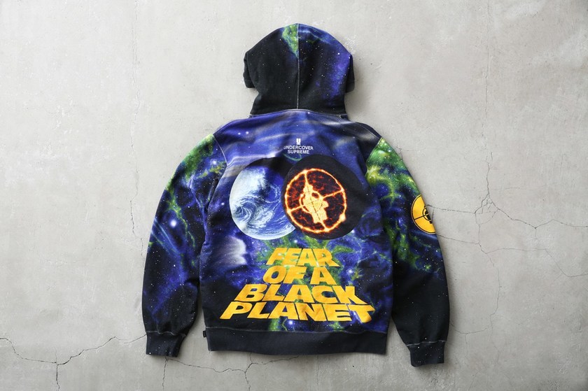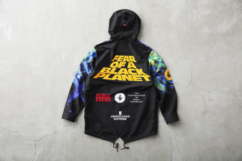 此番,在网上曝光许久的 Supreme x UNDERCOVER x Public Enemy 三方联名系列终于正式发布了这一联名系列中的单品,在设计方面,Supreme 和 UNDERCOVER 主要围绕《Fear of a Black Planet》的经典专辑封面展开,并将夺人眼球的“宇宙”和“星球”印花注入包括连帽风衣、设有可拆卸袖子的棉服、连帽卫衣和裤子,以及联合 Dr. Martens 打造的靴款之中,注定会成为今年春夏最具话题性的设计。