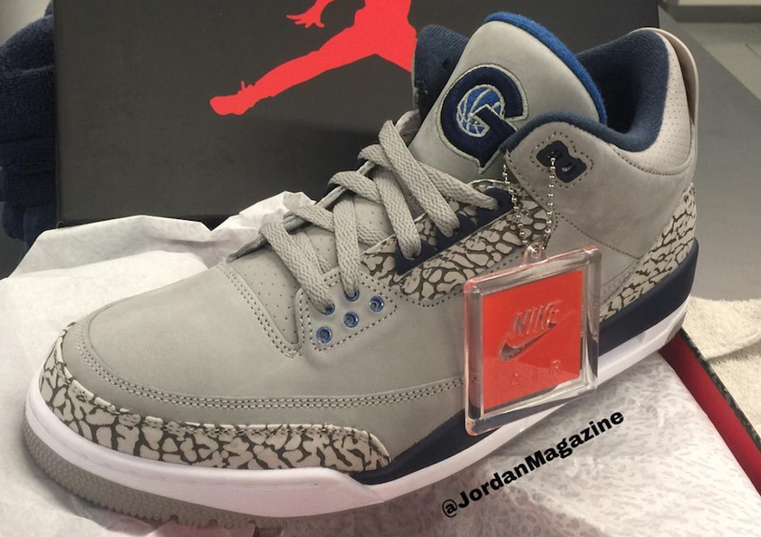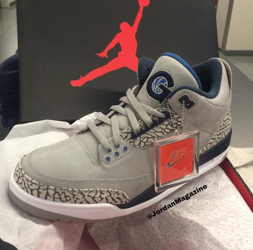 继北卡、密歇根之后,乔治城也在“疯狂三月”期间收到了属于他们自己的 Air Jordan 3 Georgetown Hoyas PE 配色。