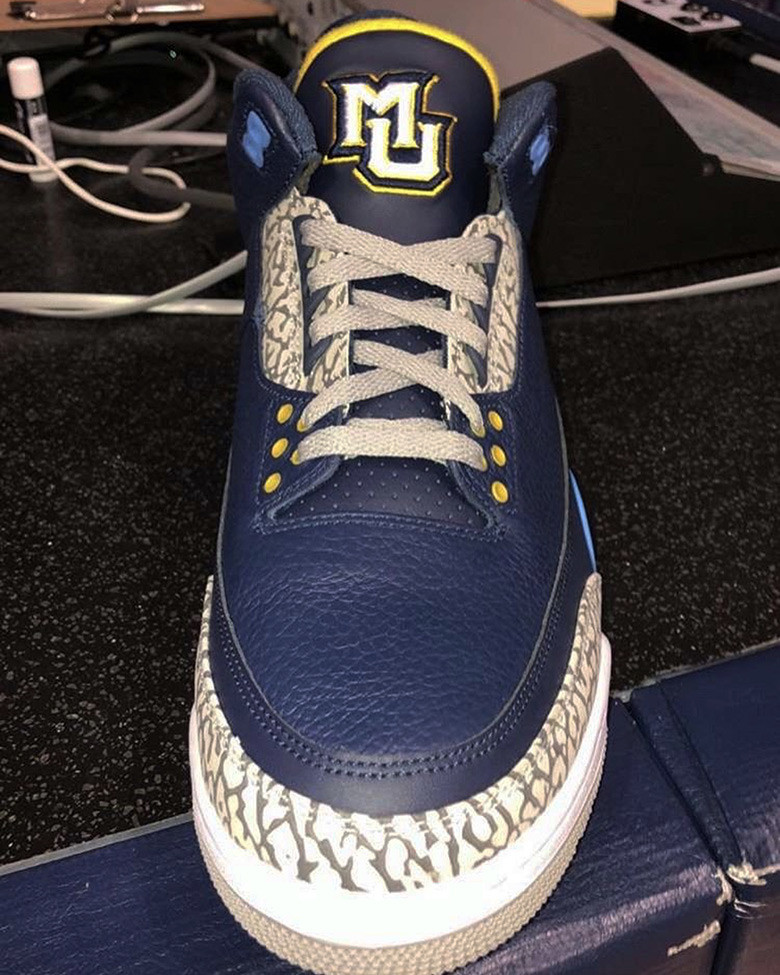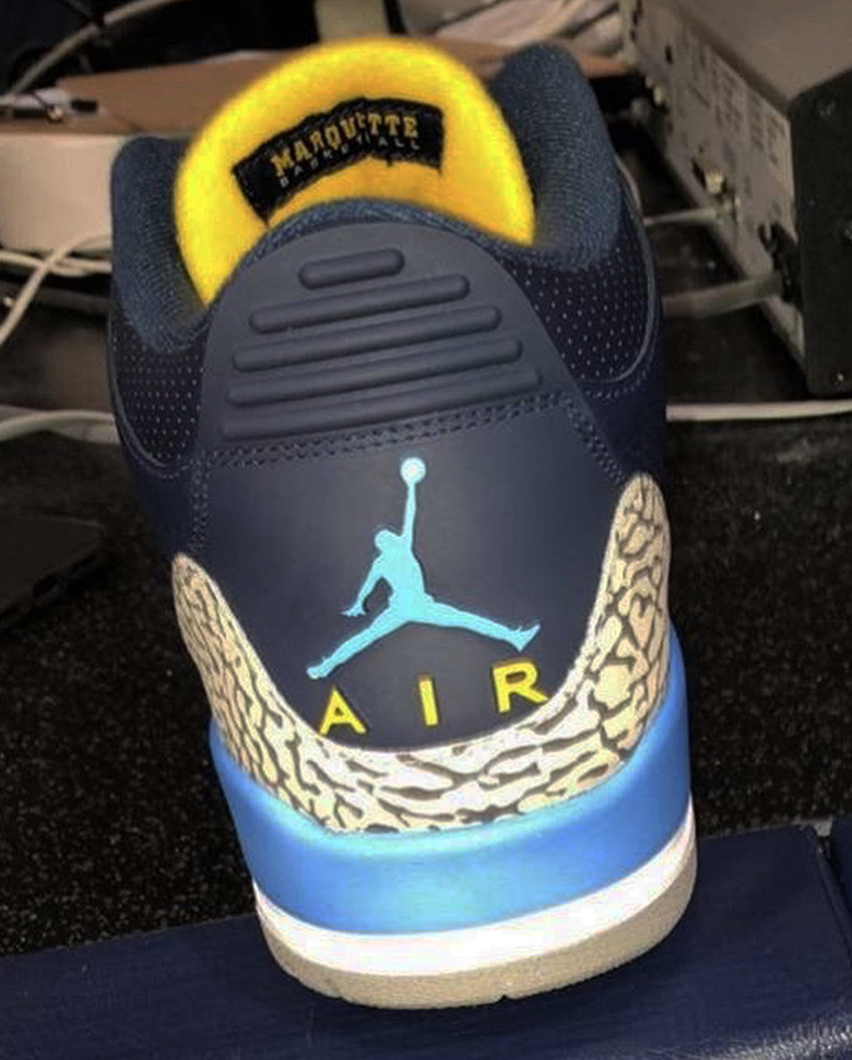 在前几日乔治城释出专属 Air Jordan 3 Georgetown Hoyas PE 配色之后,近日 Jordan Brand 旗下马奎特大学也释出了属于自己的 Air Jordan 3 Marquette PE 。
