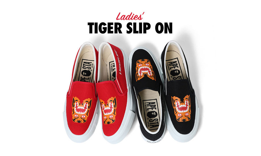 伴随 2018 夏季的临近,Silp On 又将成为各位潮人出门的首选单品,此番 A BATHING APE 就为女生打造了全新的 Tiger Silp On 系列。鞋身整体沿用了经典的一脚蹬造型作为主打,分别以黑、红配色作为基调,同时在鞋头融入 A BATHING APE 经典的虎头造型作为点缀,鞋侧也印有 A BATHING APE 字样凸显身份。据悉,此次鞋款将在 3 月 17 日正式发售。