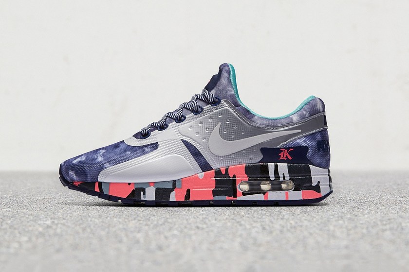 该鞋款以 Air Max Zero 为蓝本展开设计,并以灰色鞋面交错的蓝白色为主,配合鞋底泼墨粉色,鞋后侧印有王俊凯个人 Logo,表达出向往自由、挣脱束缚的自我精神,最后配搭 Max Air 缓震系统及内衬设计,缔造舒适贴合的穿着体验。