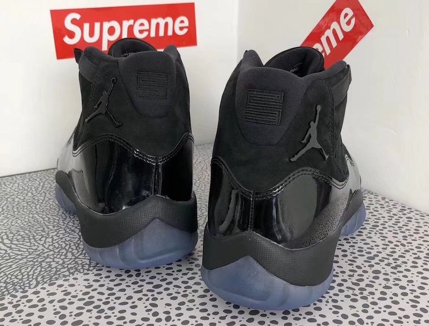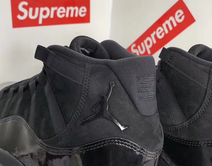 虽然采用近乎全黑的装扮,但麂皮与漆皮的碰撞却依旧格外明显。而后跟电镀材质的 Jumpman Logo 同样在光线的照射下闪闪发亮,与宽大的漆皮完美呼应。