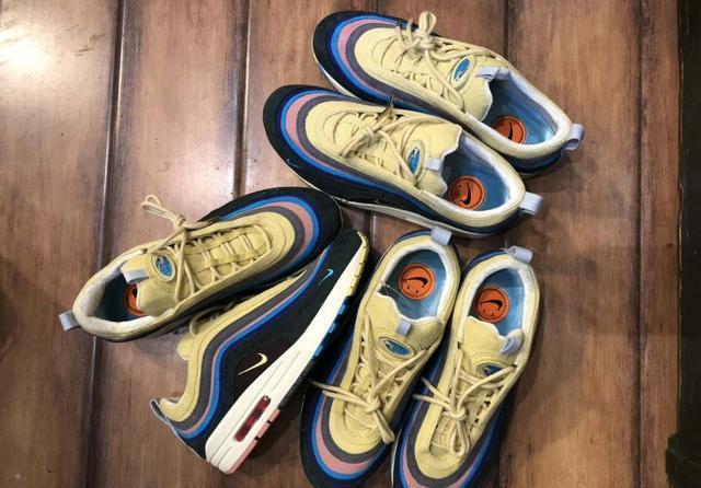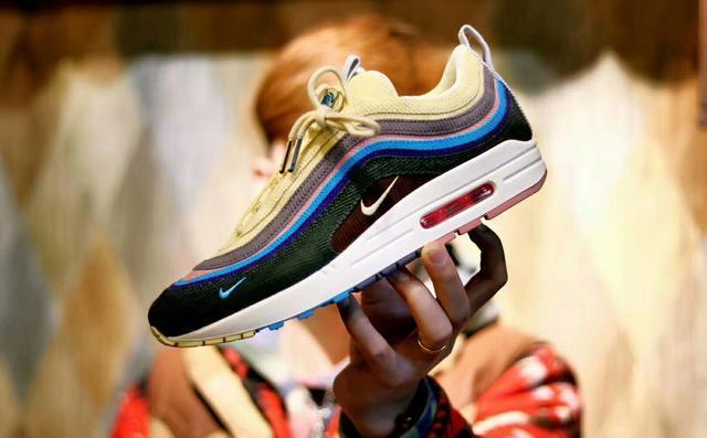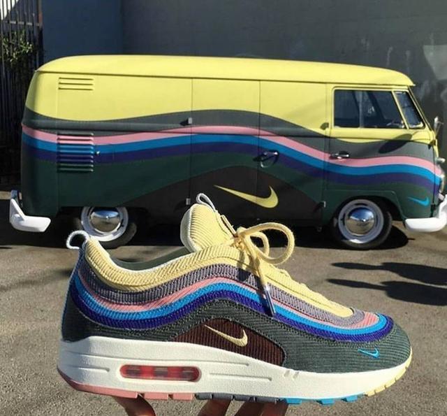 Nike Air Max 1/97 这款复古味十足的球鞋灵感来源自 80 年代的 Vintage 帽款,Sean 用上自己很喜欢的灯芯绒元素取代原本鞋面的网眼和合成结构。将Air Max 97 和 Air Max 1 这两款鞋 “嫁接” 在一起,而幻彩灯芯绒材质则打造出流线型的“子弹头”造型。丝绒的内里、有着 “笑脸” 图案的鞋垫、丹宁布的拉环以及小 Swoosh Logo 的运用也算细节满满。Mini swoosh加持更增添古着风味; 后跟更是绣有VA-LA字样。