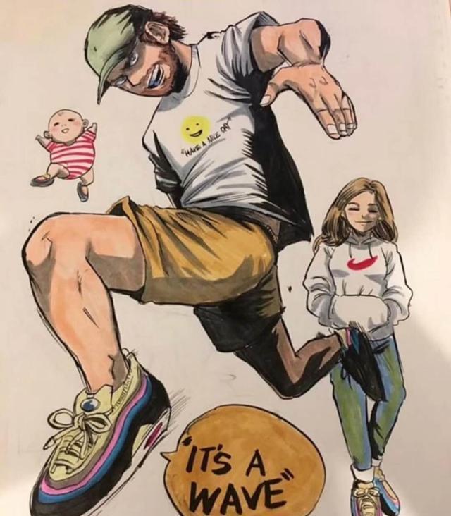 在我店里工作的一个朋友对我说,“老兄,你注意到你的鞋子可以匹配所有白色的、复古的t恤吗?“ Wotherspoon回忆说,”尽管我的团队告诉我,采用这么多色彩可能太过冒险,但我真的想使用这些好看的颜色。当然,这双 Nike Air Max 1/97 的颜色搭配,灵感也来源于复古耐克运动鞋和80-90年代流行的风衣。Wotherspoon指出,之所以搭载“复古笑脸”的图案,也是希望当鞋迷穿上你的爱鞋时,就能看到鞋子以笑脸回应你的爱。
