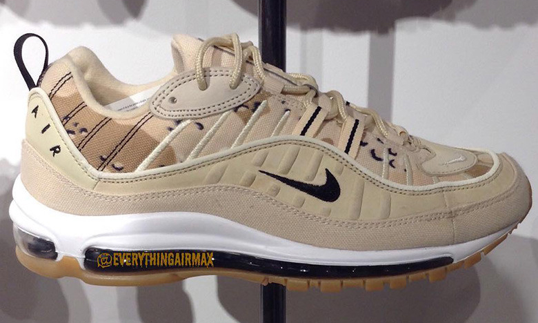 在今年年初发售了几个配色的 Air Max 98 后,Nike 或将延续去年 Air Max 97 的成功之路,于今年秋季继续带来 Air Max 98 这双经典鞋款的新配色。近日,网上曝光了一组全新配色 Air Max 98 的图片,其中不乏有沙漠迷彩、蛇鳞这种高人气配色。可惜目前暂无准确发售信息,感兴趣的朋友请继续关注。
